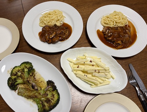 何も予定が無く暇な日だったので「夕食は何にしようか?」と考えながら買い置いた食材を見ながら作りました。出来上がったお料理をテーブルに並べると···