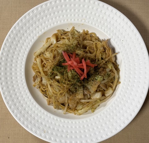朝起きたときから「夕飯はやきそば!」のムードに成りました。私はスーパーへ家人はJAへと手分けして食材を調達してきました。今回は日清の焼きそばで···